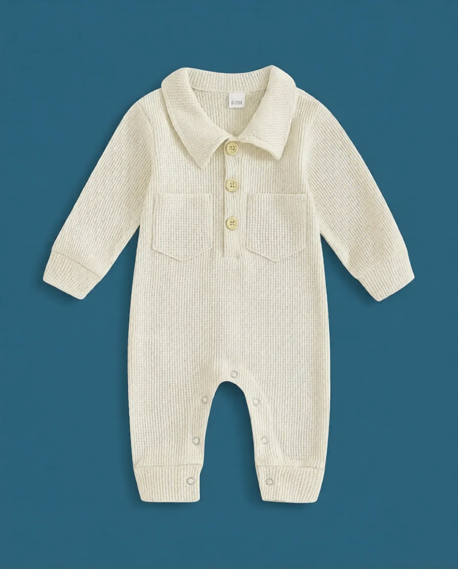 Elevate your little one’s winter wardrobe with this sophisticated and cozy polo-style romper. Designed with a timeless aesthetic, this knit jumpsuit offers a perfect blend of warmth, comfort, and smart style for any occasion.