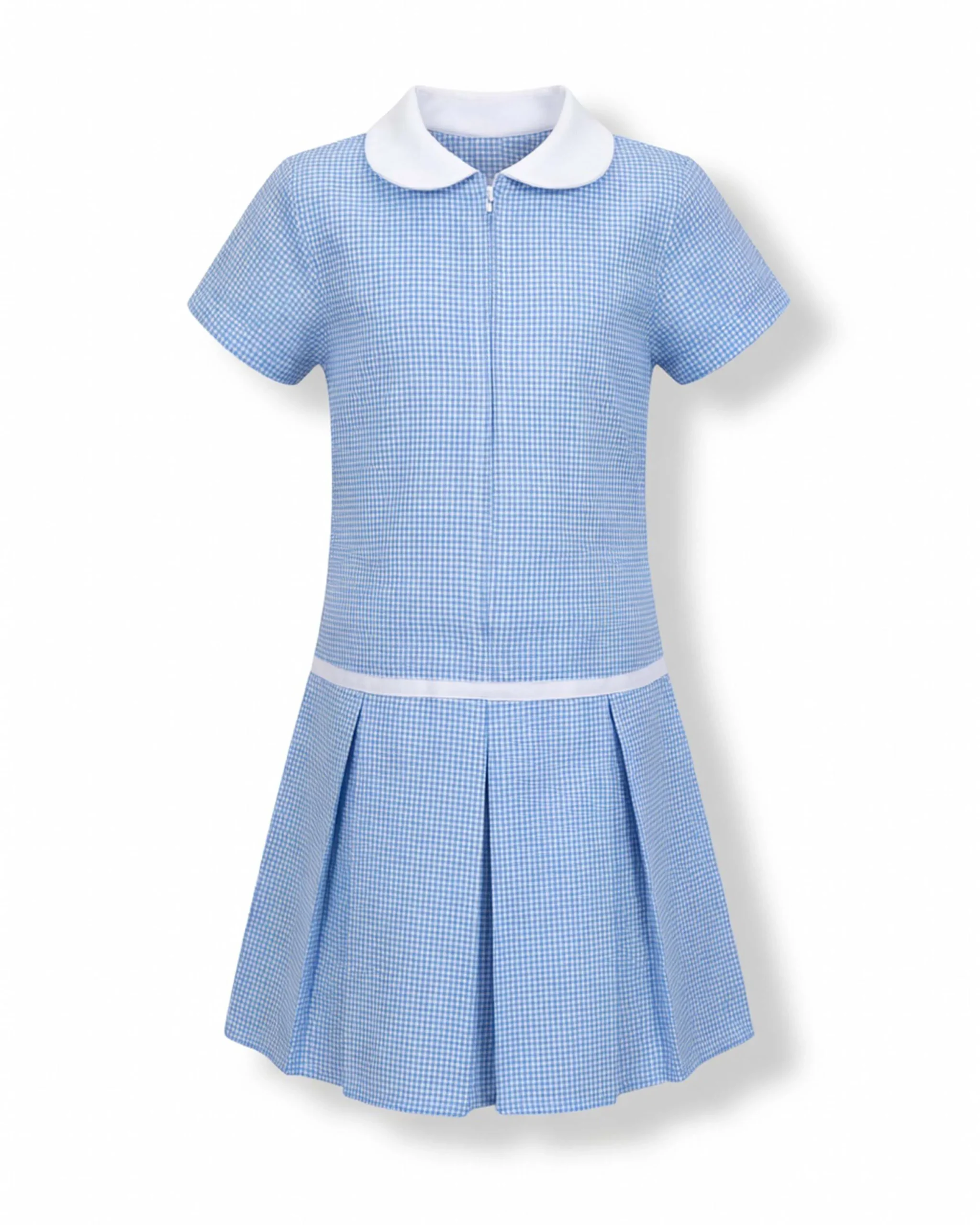 Classic Gingham Pattern: Features a vibrant light blue and white checkered print for a traditional and tidy appearance.